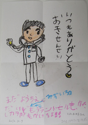 仲良くなったお子さんから、絵やお手紙をプレゼントしてくれることがあります。嬉しいことに、今では診療室に飾り切れなくなるほどいただきました。そんな可愛いらしいお子さんからのプレゼントをご紹介しています。