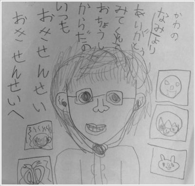 仲良くなったお子さんから、絵やお手紙をプレゼントしてくれることがあります。嬉しいことに、今では診療室に飾り切れなくなるほどいただきました。そんな可愛いらしいお子さんからのプレゼントをご紹介しています。