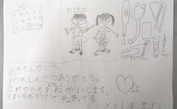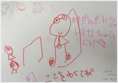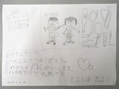 仲良くなったお子さんから、絵やお手紙をプレゼントしてくれることがあります。嬉しいことに、今では診療室に飾り切れなくなるほどいただきました。そんな可愛いらしいお子さんからのプレゼントをご紹介しています。
