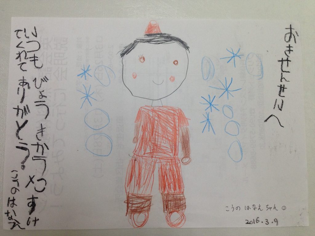仲良くなったお子さんから、絵やお手紙をプレゼントしてくれることがあります。嬉しいことに、今では診療室に飾り切れなくなるほどいただきました。そんな可愛いらしいお子さんからのプレゼントをご紹介しています。